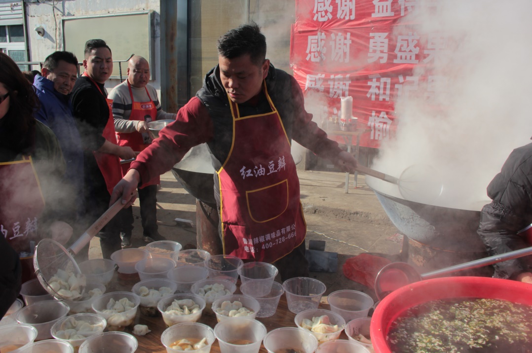 本次活動食材均由商戶贊助,商戶共贊助豬肉約650斤,面粉17袋,速凍餃子80箱,其余調(diào)料、配菜、炊具、一次性用品等物品一應(yīng)俱全。在此感謝各區(qū)域贊助商戶對本次活動的大力支持。
